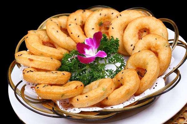 面窩, 是武漢的小吃之一,也是武漢特有的。通常只在早餐時(shí)間提供。因四周厚而中間薄得干脆成了一個(gè)小洞,呈凹狀,武漢人不習(xí)慣叫它“面凹”,而叫它“面窩”。面窩創(chuàng)始于清光緒年間。還有一些小面窩,用的鐵勺內(nèi)部較小。